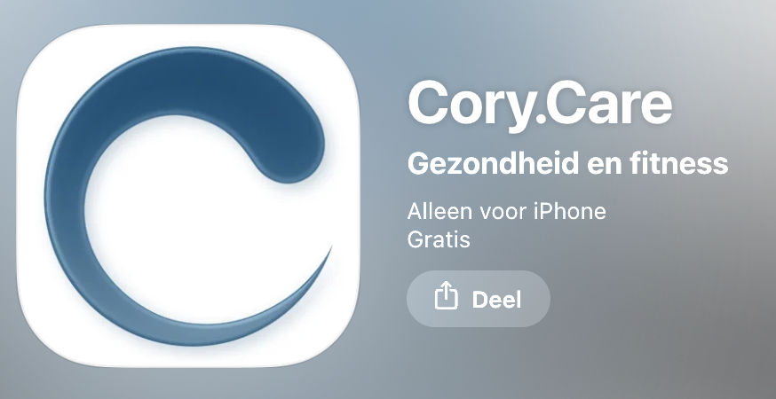 Haal de Cory.Care app op uit de App Store of Google Play. De app is gratis te downloaden.